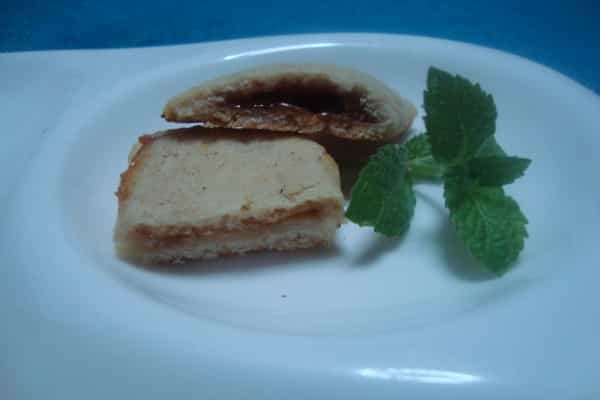 En una lata de horno, levemente enmantequillada colocar las galletas rellenas de manjar dejando un espacio entre ellas, hornear por 10 a 15 minutos, hasta que comiencen a dorarse. Dejar enfriar las galletas antes de sacarlas de la lata para evitar que se rompan.