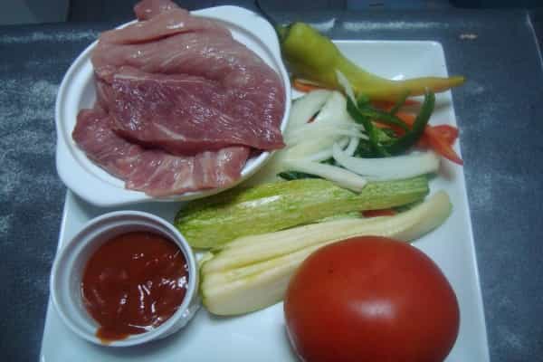-4 churrascos de carne (vacuno, pollo, cerdo) -1 pimentón -1 zapallo italiano -1 cebolla -1 taza de tomates picados en cubos pequeños -½ taza de salsa de tomates -1/2 ají verde o 2 cucharadas de ají en pasta -Sal - Pimienta -Aceite de oliva Preparación Salpimentar la carne. En un sartén con aceite de oliva caliente freír sellar los churrascos, por ambos lados, retirar de la sartén, reservar.