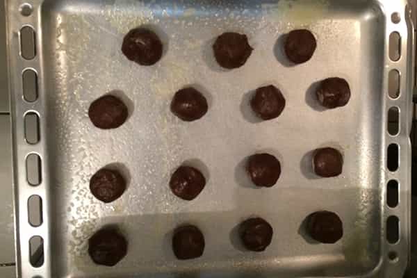 Lo que haremos ahora es enmantequillar nuestra bandeja de horno y haremos bolitas con la masa, dejando una separación entre ellas, ya que con el calor del horno las bolitas se extenderán y bajarán en altura, quedando más planas.