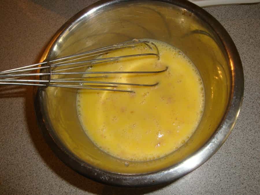 PREPARACIÓN: Ponemos en remojo el pan ya sea duro o en este caso el molido, para que se hidrate. Colocamos un chorrito de aceite a calentar, mientras tanto batimos con el batidor manual los huevos y agregamos la mezcla del pan remojado con la leche.