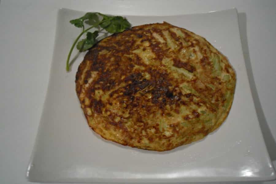 Para darla vuela puedes utilizar un plato o una tapa de olla grande, cuando esté bien cocido (el huevo no se vea líquido), está lista para servir. Esta tortilla la puedes acompañar con arroz, papas al horno o quínoa.