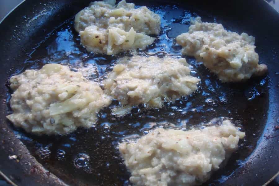 En un sartén con aceite caliente, coloca 1 cucharada de la mezcla anterior, fríe hasta que se dore, dar vuelta para dorar por ambos lados.