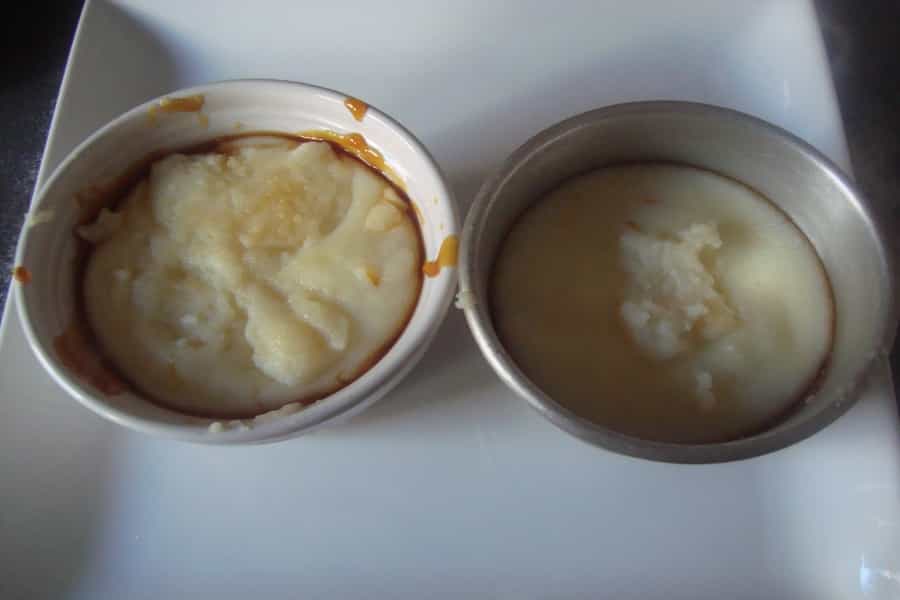 En varias recetas he mencionado mi fanatismo por las cosas dulces y los postres empalagosos. ¡Los amo! Sin embargo, no puedo dejar de lado el tema del temido aumento de peso, que va de la mano con esta buena vida en cuanto al azúcar. Pero como todo en la vida tiene solución, y hace rato que sabor y salud pueden unirse, hoy les presento una rica Sémola con leche sin azúcar. Este tradicional postre es delicioso, y en esta receta se presenta como una alternativa para aquellos que están a dieta, son diabéticos o simplemente quieren ahorrarse un par de calorías a la hora de comer. Ingredientes (8 porciones) -1 litro de leche (de preferencia descremada) -3 gramos de canela en polvo o 1 palito de canela o 1 cucharadita de ralladura de limón o naranja -160 gramos de sémola (aproximadamente 8 cucharadas) -30 gotas de edulcorante liquido (sucralosa, stevia) -2 cucharadas de agua -50 gramos de sucralosa en polvo Preparación Preparar el caramelo sin azúcar, en una olla o sartén pequeño colocar 2 cucharadas de agua y 50 gramos de sucralosa en polvo, mezclar, revolver con una cuchara de madera hasta que se disuelva y comience a oscurecerse, cuando toma un color dorado apagar y verter el caramelo sin azúcar en los pocillos.