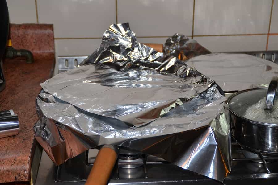 Pasado este tiempo, agrega las 3 tazas de quinoa repartiendo uniformemente por la paellera. Finalmente agrega 6 tasas de caldo de pollo (también puedes ocupar agua, pero el caldo hará que quede mucho mas sabrosa). Revuelve cuidadosamente. Si no haz podido conseguir el azafrán, en este momento debes agregar una generosa cantidad de curry y cúrcuma para darle sabor y color a la paella. Agrega las gambas en la parte superior, y finalmente cubre la paellera con un papel alusa.