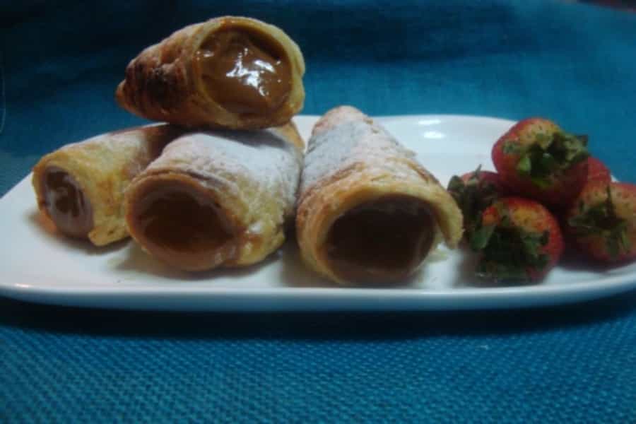 Doblar por la mitad y nuevamente doblar por la mitad. Uslerear y estirar la masa incorporando harina si fuese necesario, formar un rectángulo. Doblar la masa en tres partes, volver a uslerear. Repetir esta operación 3 veces. Dejar reposar la masa por 20 minutos. Transcurrido el tiempo de reposo, cortar la masa por la mitad. Estirar la masa de un grosor de ½ centímetro, cortar tiras de unos 2 centímetros de ancho. Enrollar las tiras de masa en los moldes para cachito (si no tienes estos moldes, puedes arrugar papel alusa foil (metálico) hasta formar un pequeño cono), empezando en la punta del molde, superponer levemente las tiras. Cocinar en horno precalentado a temperatura media por 10 a 15 minutos hasta que los cachitos estén levemente dorados. Retirar del horno, dejar enfriar. Una vez que estén fríos retirarlos de los moldes. Colocar el manjar en una manga o en una bolsa plástica, para facilitar el llenado de los cachitos. Rellenar los cachitos con manjar (también puedes rellenarlos con crema pastelera o crema chantilly). Puedes espolvorearlos con azúcar flor al momento de servir. Con pocos ingredientes podemos obtener un resultado sorprendente. Atrévete a hornear y prepara en casa estos deliciosos cachitos rellenos con manjar. Son ideales para compartir o regalar, pero por sobre todo para disfrutar con todos los integrantes de la casa.
