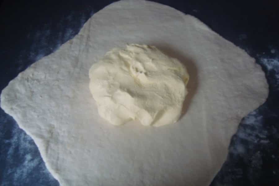 ¡Qué tentación! Estos deliciosos cachitos rellenos con manjar son, sin duda alguna, realmente irresistibles. La hora del té es el momento propicio para disfrutar de estos típicos dulces chilenos. Ya no hace falta ir a La Ligua para disfrutar de estas delicias, ya que con esta receta y en simples pasos podrás confeccionar estos ricos cachitos, hechos en base a pocos ingredientes, obteniendo como resultado una explosión de dulzura. ¿Te animas? Pon a prueba tus dotes culinarias y ¡a cocinar! Ingredientes (20 unidades) -500 gramos de harina sin polvos de hornear -1 cucharadita de sal -300 gramos de margarina a temperatura ambiente -500 gramos de manjar Preparación En una mesa colocar la harina y la sal, en el centro agregar agua fría en pequeñas cantidades, hasta formar una masa suave y lisa. Dejar reposar por 15 minutos. En una mesa enharinada estirar la masa, colocar la margarina (a temperatura ambiente) en el centro.
