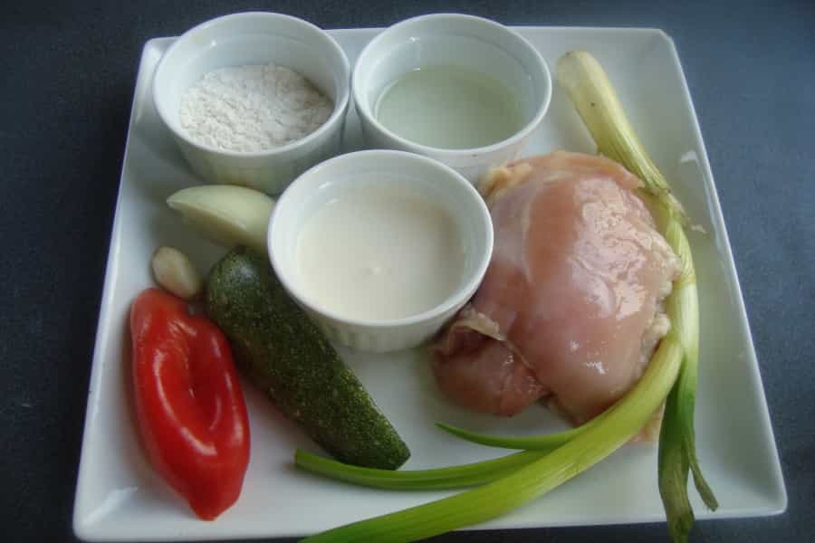 -250 gramos de harina -½ litro de leche -50 gramos de mantequilla o 1 cucharada de aceite de oliva -3 huevos -½ cucharadita de sal -1 cucharada de coñac (opcional) -200 centímetros cúbicos (cc) de crema -1 pechuga de pollo -½ cebolla o 1 cebollín -1/2 pimentón -½ zapallo italiano -1 diente de ajo -Sal - Pimienta Preparación En un recipiente mezclar la harina, los huevos, la mantequilla a temperatura ambiente o el aceite, la lecha, una pizca de sal, y el coñac, batir suavemente hasta incorporar todos los ingredientes y obtener una crema homogénea y lisa. Puedes hacer este procedimiento con la batidora o con un tenedor, lo importante es que no queden grumos. Tapar el recipiente y dejar reposar en el refrigerador por 1 hora.