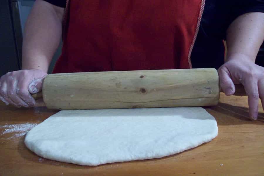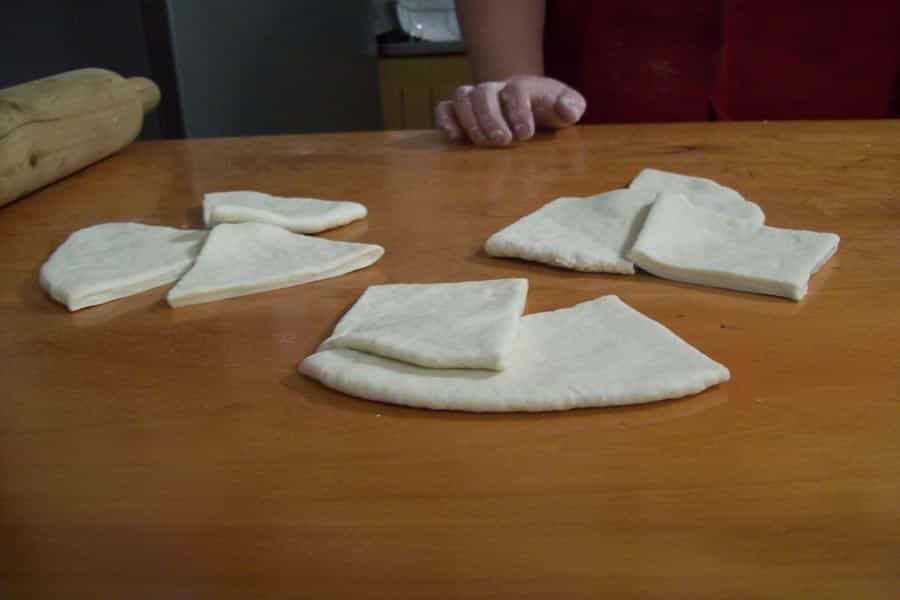 Con un uslero deja la masa lisa con 7mm. de grosor aproximadamente y corta en triángulos o rectángulos.