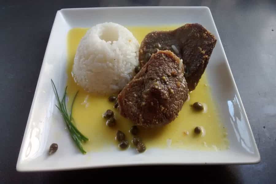 ¿Quieres preparar carne de una manera distinta? Esta receta es una opción deliciosa. Para aquellos que les encanta la carne, pero quieren darle un toque diferente, te presentamos “Carne asada con salsa de alcaparras”, una preparación donde abundan los olores y sabores, con toda la intensidad que aportan las alcaparras, la suavidad de la crema y la acidez de la mostaza y el limón, este plato logra equilibrar todos los ingredientes, obteniendo un resultado fabuloso. Un plato fácil de preparar, pero con un resultado extraordinario. ¡No te arrepentirás de prepararlo! Ingredientes (5 porciones) -1 kilo de lomo o asiento -100 gramos de mantequilla -3 cucharadas de alcaparras -1 diente de ajo -Jugo de 1 limón -250 mililitros (ml) de crema -1 ½ cucharadita de mostaza en grano o en polvo -2 vasos de vino blanco -Sal - Pimienta -Aceite de oliva Preparación Para la salsa de alcaparras: en una olla derretir la mantequilla y agregar 250 mililitros (ml) de caldo (puede ser agua o 125 mililitros de agua + 125 mililitros de vino blanco), la mostaza y la crema, mezclar y cocinar a fuego bajo, dejar hervir hasta que la salsa espese (15 minutos aproximadamente). Agregar el jugo de limón y las alcaparras, salpimentar a gusto. Reservar. Preparar la carne: limpiar la carne, espolvorearla con sal y pimienta. En una fuente con aceite, colocar la carne, agregar el ajo, llevar a horno fuerte, cocinar por 20 minutos a fuego alto y luego 15 minutos a fuego medio.