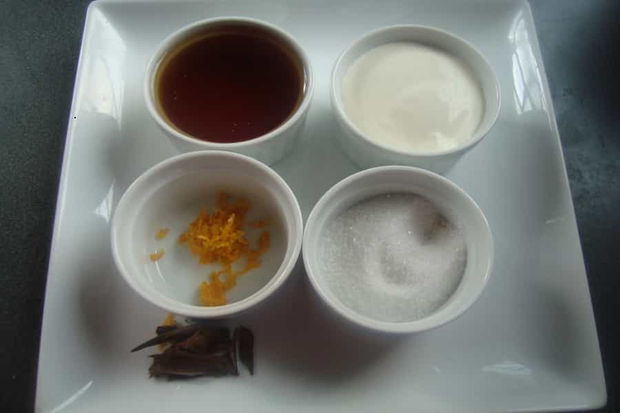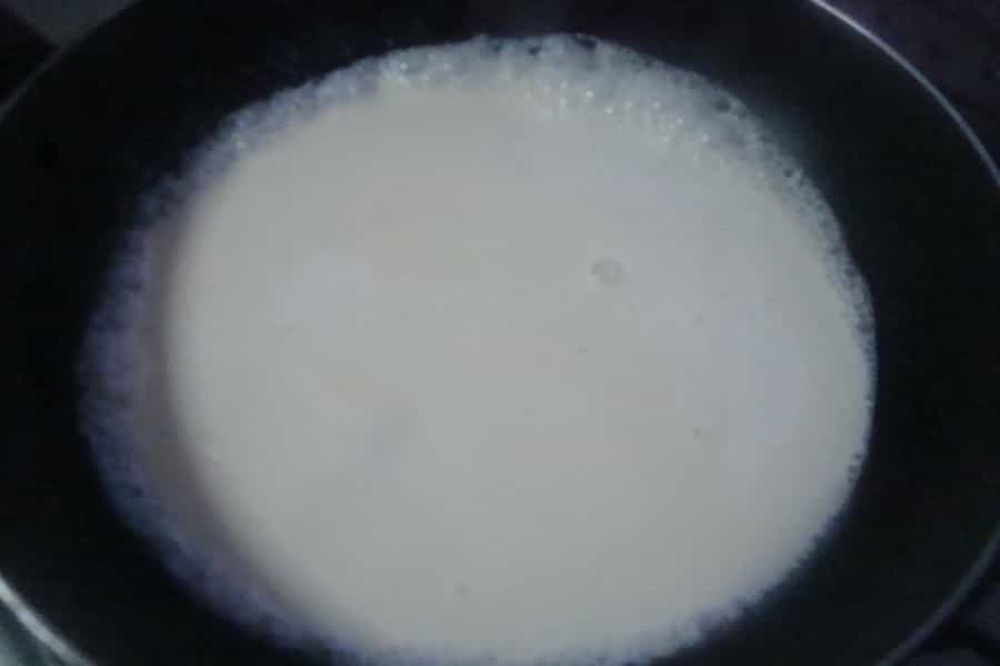 -600 mililitros (ml) de chicha -250 gramos de azúcar -1 cucharada de ralladura de naranja -Un palito de canela -500 gramos de crema Preparación En una olla colocar la ralladura de naranja, el azúcar, la chicha y la rama de canela, cocinar a fuego medio hasta que la preparación se reduzca a la mitad (aproximadamente 30 minutos). En otra olla, colocar la crema, cocinar a fuego medio hasta que hierva, una vez que esté burbujeando, retirar del fuego.