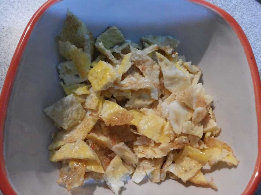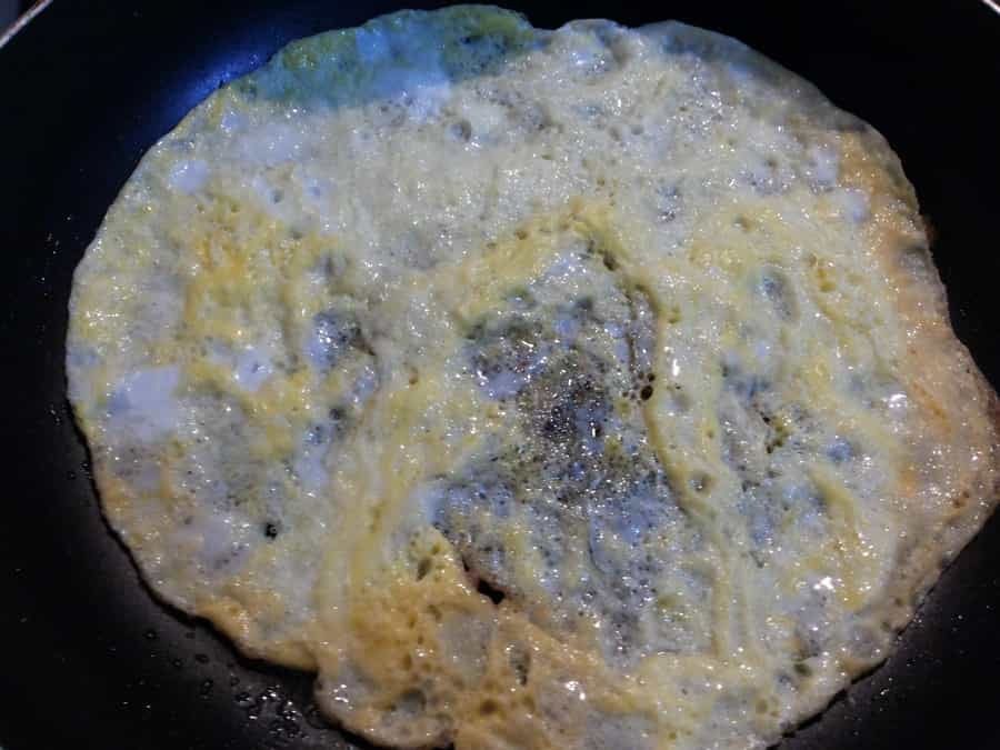 Debemos hacer la tortilla con un huevo batido. La tortilla debe quedar lo más delgada posible
