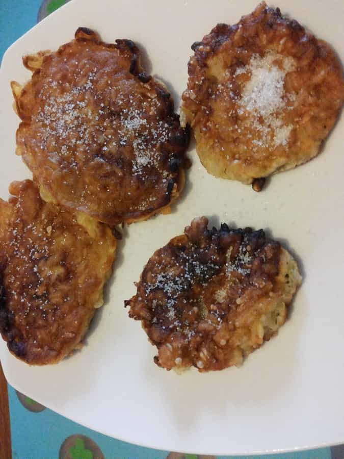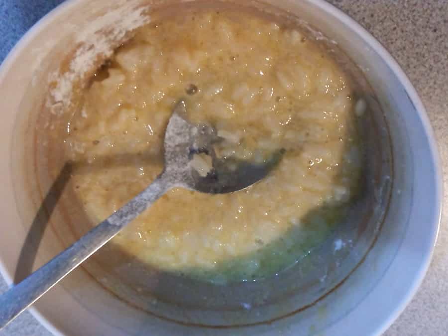 Estas tortitas de arroz me la enseñó a hacer mi suegra que nunca desperdiciaba nada en la cocina. Están hechas con el arroz que ha quedado. Son muy ricas para los niños y les sirve de nutritiva merienda. Para 4 tortitas necesitarás: 1 taza de arroz cocido 1 huevo 2 cucharadas de harina 4 cucharadas de azúcar