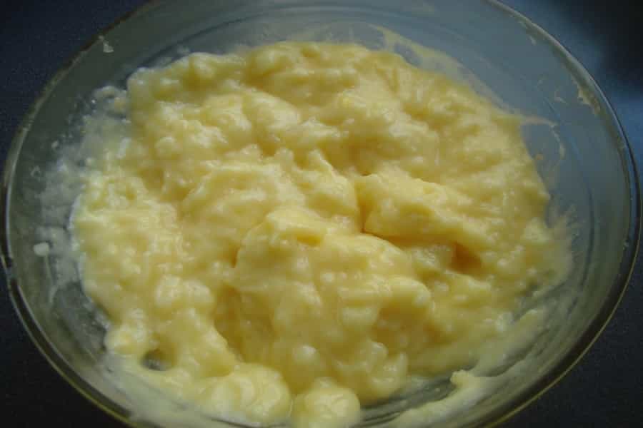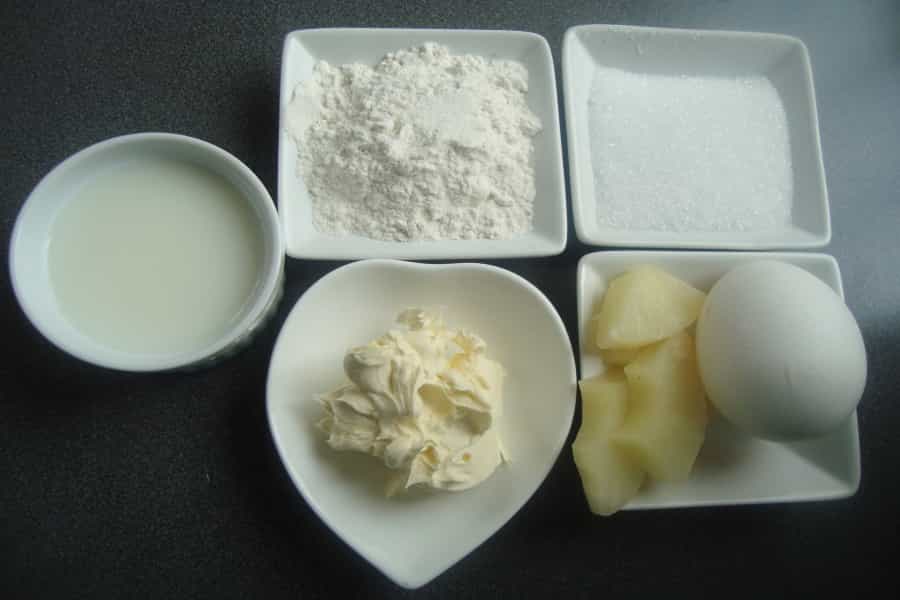 -3 tazas de harina -1 cucharadita de polvos de hornear -6 cucharadas de azúcar flor -4 yemas -8 cucharaditas de de leche -200 gramos de margarina -1 tarro de piña -400 mililitros (ml) de leche -3 1/2 cucharadas de maicena -3 cucharadas de azúcar -1 sobre de jugo de piña -Margarina para untar Preparación Precalentar el Horno. Escurrir las piñas, reservar el jugo. En una olla mezclar en frío 400 mililitros (ml) de leche, 100 mililitros (ml) de jugo de piña, maicena, azúcar y el jugo de piña en polvo, cocinar a fuego medio revolviendo constantemente hasta que hierva y espese. Retirar del fuego y añadir ½ tarro de piña molida (escurrida). Revolver y reservar la crema de piña.