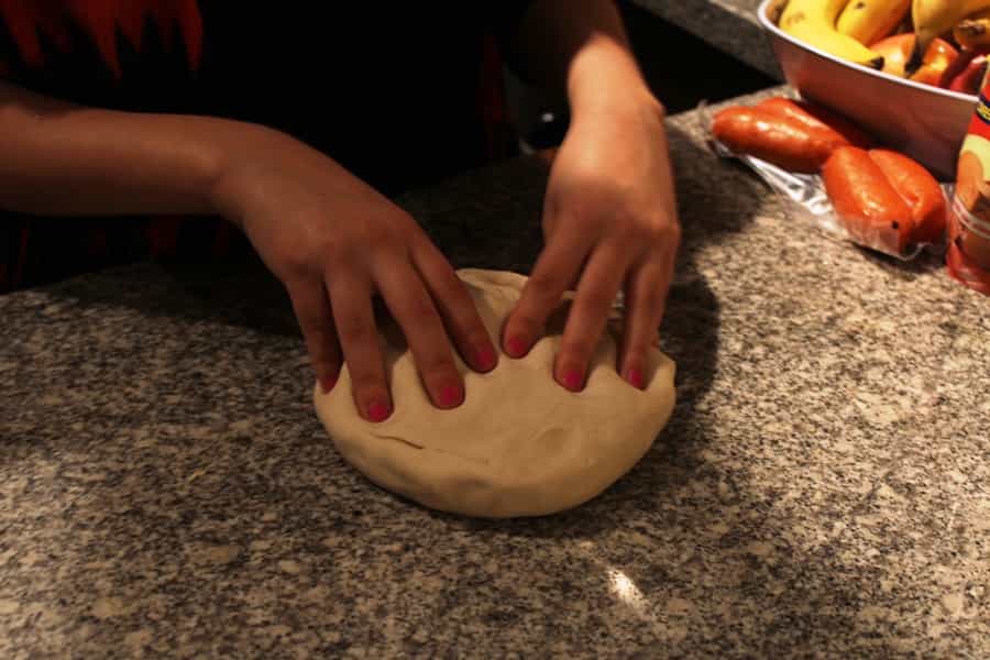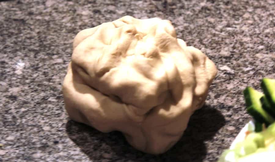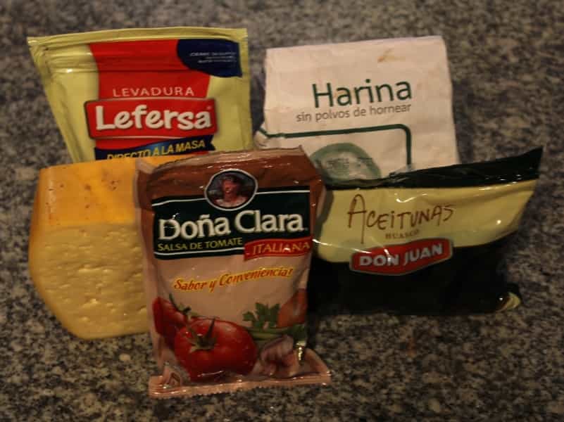 Preparación 1. Mezclar la sal con la harina y colocar la mezcla en una superficie limpia en forma de volcán. 2. Verter el aceite de oliva en el agujero del volcán. 3. Mezclar la levadura en polvo con el agua hasta que quede una mezcla grumosa. Ir vertiendo el agua en la harina y empezar a amasar con las manos hasta que quede una masa uniforme pero chiclosa.
