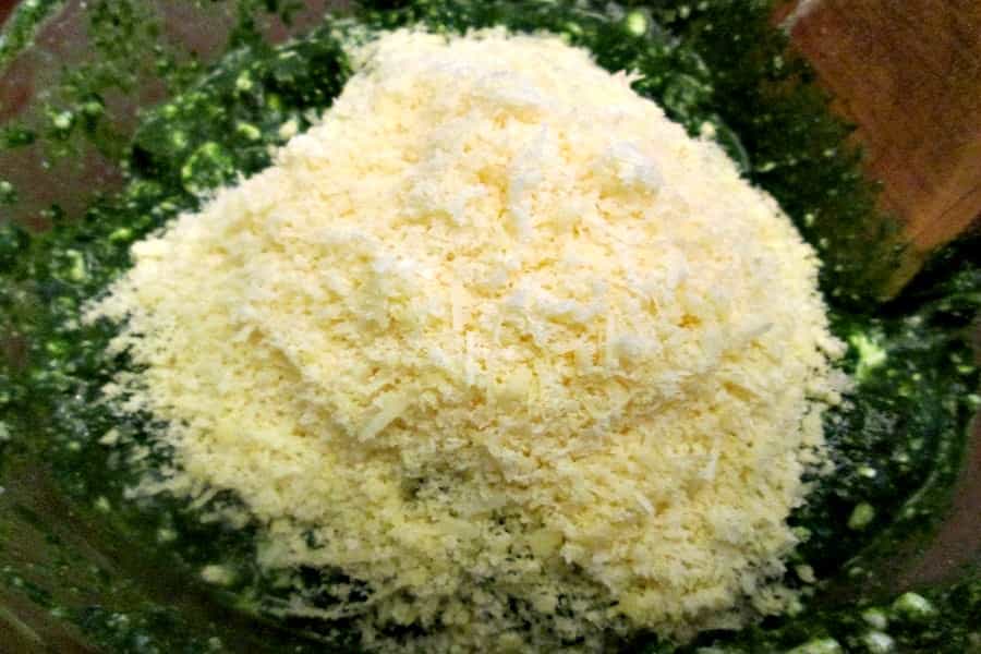 5.- Ponga a cocer la espinaca brevemente. Luego, muélalas y mezcle con la ricotta y el queso parmesano.