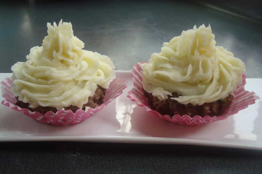 Llevar a horno medio y cocinar por 15 minutos, apagar. Una vez que estén tibios, desmoldar. Colocar los cupcakes en moldes de papel. Antes de servir calentar en el microondas por 1 minuto a 900 W para lograr la temperatura adecuada. Colocar el puré en una manga pastelera y aplicarlo sobre el cupcakes. ¡Sorpresa! Si bien al morder estos cupcakes tu lengua estaba lista para percibir un dulce sabor, esta divertida forma de comer puré con carne no te hará olvidar jamás la magia que puede ocurrir en nuestra cocina. Prepara trampantojos y sorprende a todos con increíbles preparaciones. ¡A jugar!