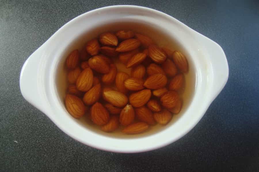 -1 taza de almendras Preparación En un recipiente con abundante gua, remojar 1 taza de almendras toda la noche.
