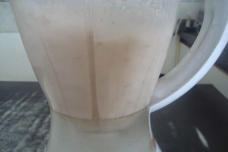 Al día siguiente escurrirlas, desechar el agua del remojo. Licuar por 2 minutos las almendras remojadas y escurridas con 1 litro de agua cocida o agua mineral sin gas.