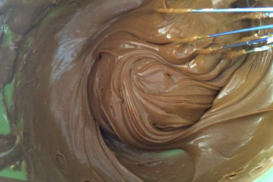 Luego pondremos a derretir nuestro chocolate para añadirlo a la mezcla. En este caso, yo coloqué el chocolate recién derretido, caliente, ya que así, al momento de mezclarlo, se solidificarían algunas partes del chocolate, logrando que la mezcla tenga algunos trocitos naturales de chocolate.