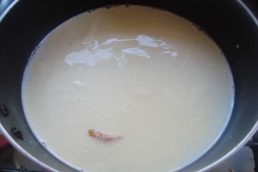 Colocarla nuevamente en la olla, agregar azúcar y calentar a fuego suave sin dejar de revolver. En un pocillo pequeño disolver la gelatina en el licor.