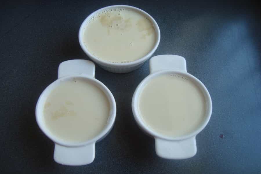 Incorporar el licor disuelto a la leche con crema, revolver hasta que la gelatina se haya disuelto por completo. Agregar la esencia de vainilla, revolver y apagar. Dejar enfriar y dividir la pannacotta en pocillos individuales Refrigerar por 4 horas.