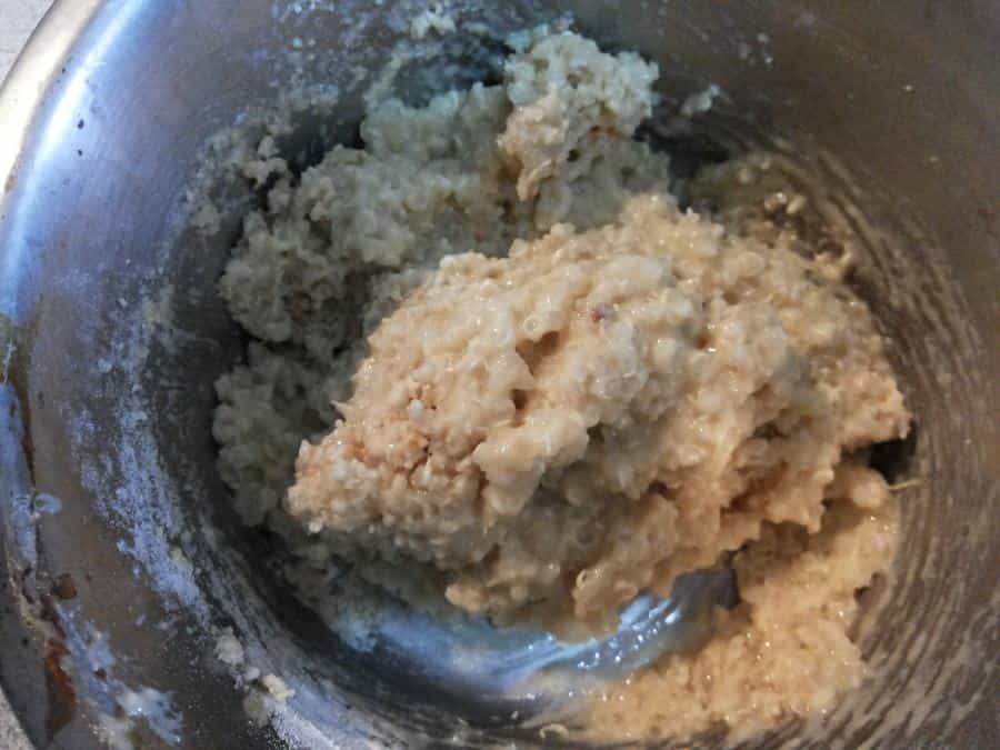 Mezcla la quínoa, el huevo y el pan molido en un envase.