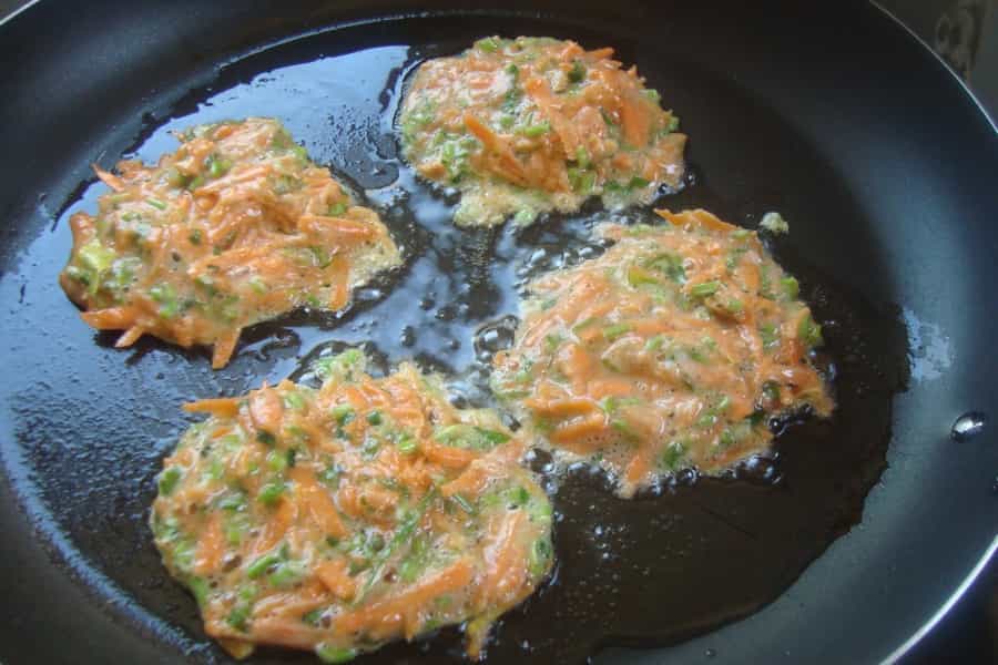 Con las manos tomar un puñado de mezcla, formar pequeñas bolitas y aplastarlas un poco con cuidado, dar la forma de hamburguesa. En un sartén con aceite caliente, colocar las hamburguesas de zanahoria, cocinar a fuego medio durante 2 minutos, dar vuelta y cocinar por otros 2 minutos.