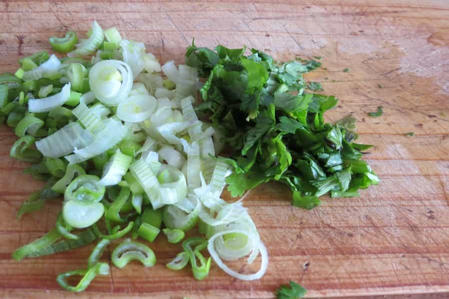 Picar el cebollín y cilantro en trozos pequeños.