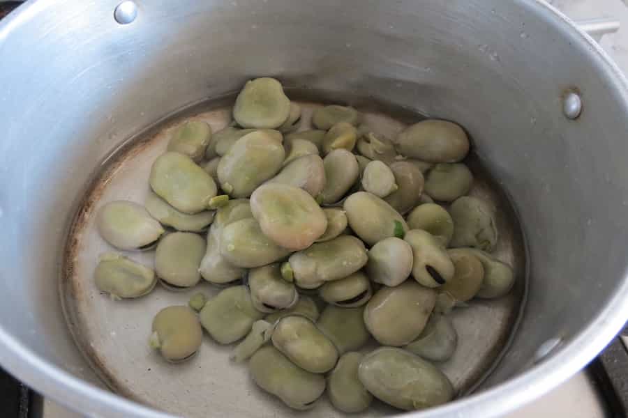 Preparación: Cocinar las habas, lo puedes hacer un día antes y mantenerlas en el refrigerador.
