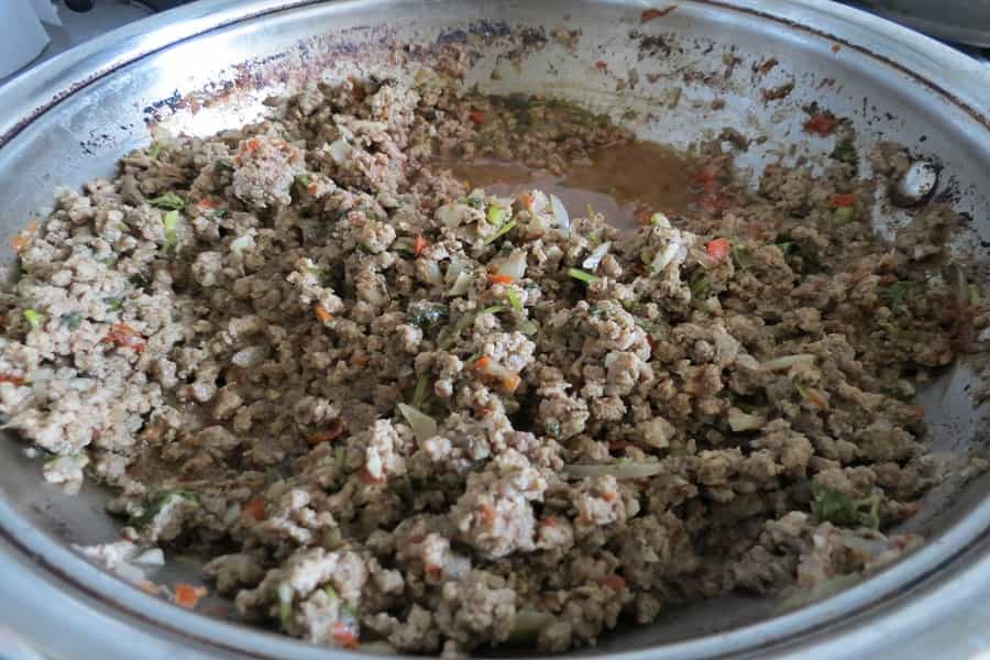Una vez bien cortaditos, se le agregan a la carne y se deja cocinar por unos 10 minutos, en ese momento se pueden agregar distintas especies de su gusto como salsa de soya, curry, etc. Dejar reposar la carne.