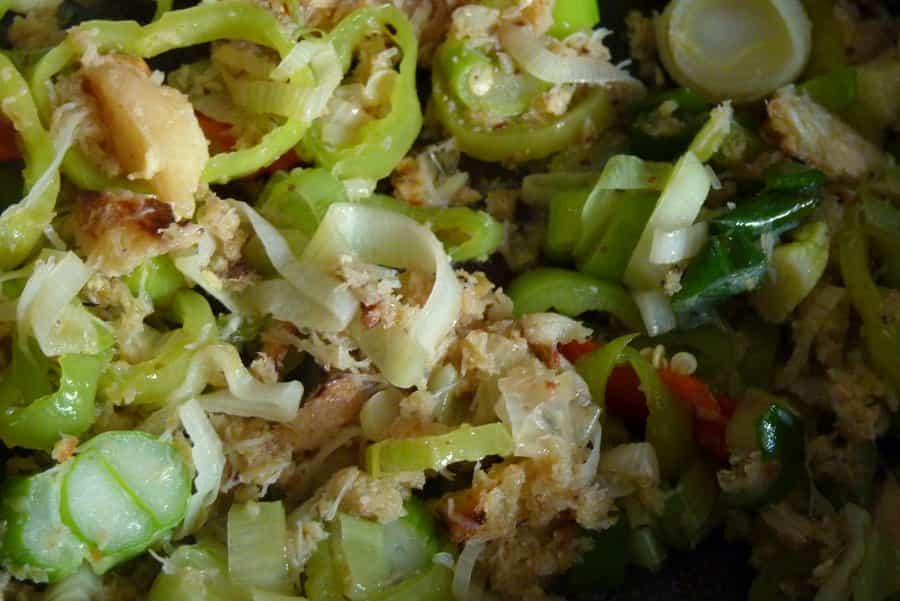 Revisando el freezer, descubrí que tenia carne de jaiba congelada. Mirando el resto de los ingredientes disponibles ese día, decidí mezclar y probar. El resultado fue una deliciosa sopa dulce-picante. Ingredientes 200 gramos de carne de jaiba 200 ml de crema de coco 1 ají verde grande 100 gramos de porotos verdes 1 pimentón rojo chico 1 cebollín 2 cucharadas de aceite de oliva merquén, sal y pimienta a gusto limón Porciones 4 porciones Preparación