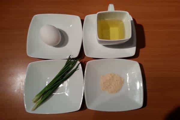 Ingredientes - 1 huevo - 1/2 taza de aceite - 1/2 cucharadita de ajo en polvo - Cibulette - Sal y pimienta