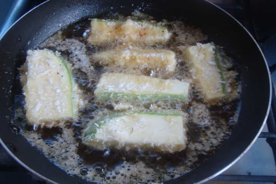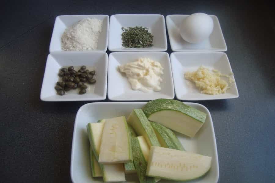 -2 zapallos italianos -1 taza de pan rallado o panko -½ taza de queso rallado -1 huevo -½ taza de mayonesa -1 cucharada de alcaparras -1 cucharada de orégano -Sal - Pimienta Preparación Lavar y cortar los zapallos italianos por la mitad y luego cada mitad por la mitad longitudinalmente, luego nuevamente por la mitad hasta obtener 8 palitos. Enun recipiente batir el huevo, sazonar el huevo con sal y pimienta. En otro plato poco profundo mezclar el pan rallado o panko junto con el queso rallado, salpimentar. Sumergir cada palito de zapallo italiano en la mezcla de huevo, luego volcar en la mezcla de pan rallado, asegurándose de que cada palito quede cubierto. Freír en aceite caliente, girándolo hasta lograr que el palito de zapallo italiano quede dorado.