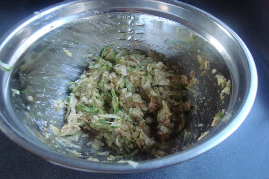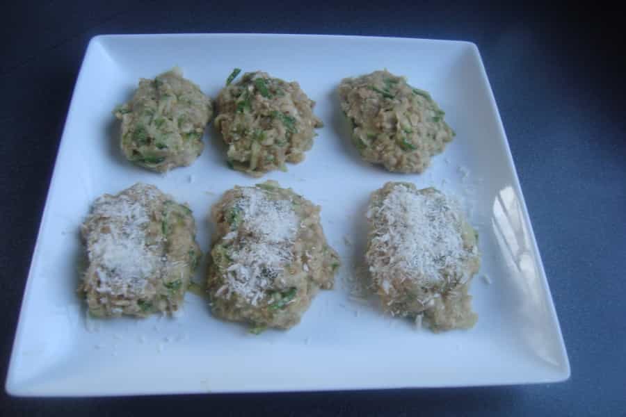 En un plato poner harina, en otro poner un huevo batido y en otro pan rallado. Formar bolitas con la masa de zapallo italiano, darle la forma de un nuggets. Pasar los nuggets de zapallo italiano primero por harina, luego por huevo batido y finalmente por pan rallado.