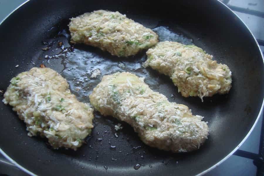 Freír en un sartén con aceite caliente, dar vuelta y cocinar por ambos lados, una vez que tomen un color dorado, retirar. Puedes servir estos nuggets de zapallo italiano con papas, ensaladas, arroz, puré