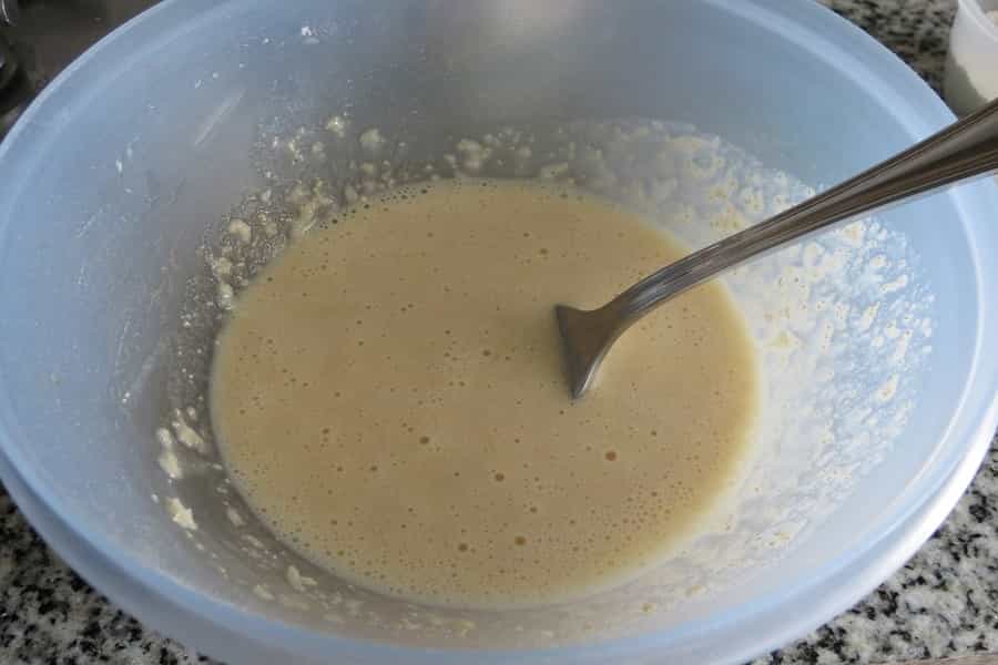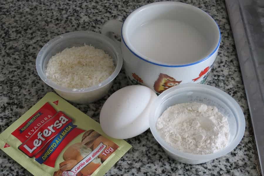 Preparación: Colocar la leche de coco en un envase y la harina tamizada, revolver bien, agregar el coco rayado y la levadura, una vez que esté todo bien mezclado, agregar el huevo batido previamente, agregar miel y la vainilla, puedes hacer la mezcla en la juguera o con un batidor manual, pero es importante dejarlo reposar para que espese.