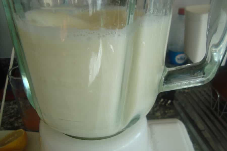 Transcurrido el tiempo de maceración, colocar la fruta en la juguera y triturar, añadir 2 cubos de hielo y el vino, mezclar hasta integrar totalmente.