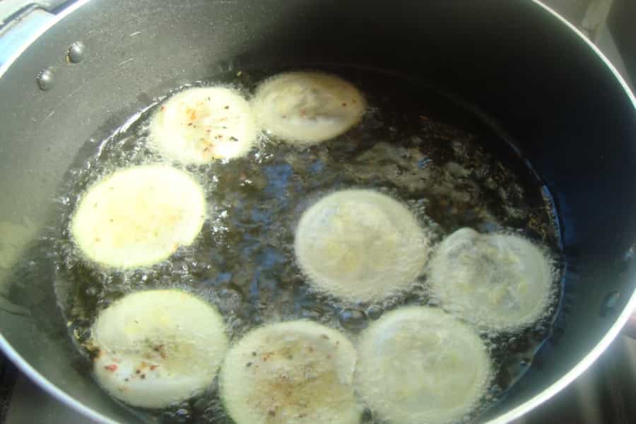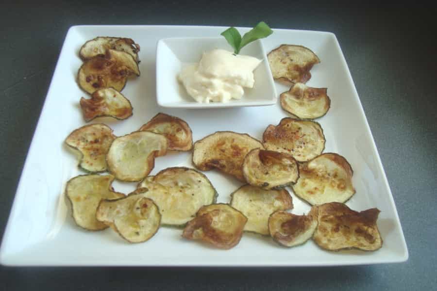 Ya he mencionado en otras ocasiones mi fascinación por el zapallo italiano, de modo que estoy constantemente en búsqueda de nuevas preparaciones que los integren. Hoy les presento un snack frito que rescata lo mejor de su sabor, combinado con intensos ingredientes. Prueba unos ricos Chips de zapallo italiano y disfrútalos en un cóctel o de aperitivo. ¡A cocinar! Ingredientes (4 porciones) -2 zapallos italianos -Merquen (cantidad necesaria) -Orégano (cantidad necesaria) -Sal -Aceite Preparación Lavar el zapallo italiano, cortar rodajas bien delgadas (con un cuchillo o una maquina). Disponer las láminas de zapallo italiano en un plato con papel absorbente, con otro papel absorbente cubrirlas y secar lo más que se pueda tratando de eliminar la mayor cantidad de agua y humedad. Esto hará que los chips queden más crujientes. Una vez que estén secos colocarlos en un plato limpio y sazonar por ambos lados con sal, orégano y merquén a gusto.