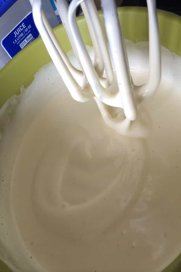 Ponemos nuestra crema a batir unos minutos para que suba, pero no debemos batir en exceso porque no queremos que se vuelva Chantilly.