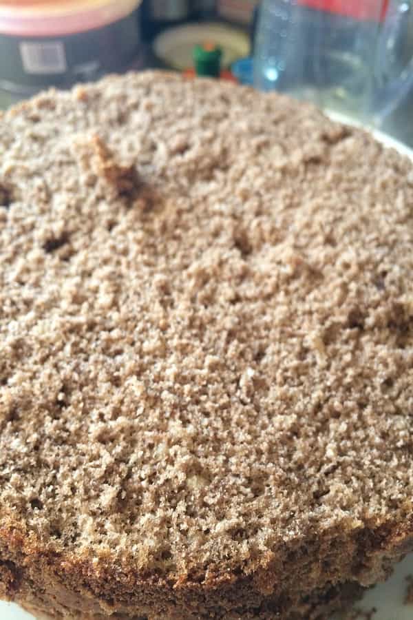 Luego, deben hidratar el bizcocho con almíbar, ya que si no queda muy seco. Recuerden que el bizcocho es como una esponja que necesita líquido. En este caso, pueden añadirle almíbar de café.