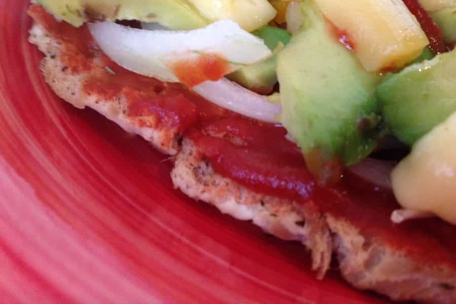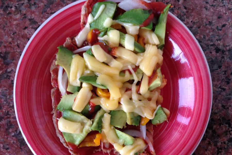 Colocas la salsa de tomate, la palta, la cebolla y el pimentón. Un poco de pimienta y orégano. La meter al horno por última vez unos 5 a 6 minutos y al final agregarás el queso para que se derrita con el calor generado.