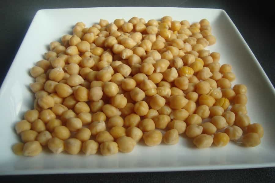 Lavar y remojar los garbanzos por al menos 10 horas. Transcurrido el tiempo de remojo, escurrir y vaciar los garbanzos a una olla con agua y una pizca de sal. Cocinar a fuego medio por 30 a 45 minutos o hasta que estén tiernos. Escurrir, dejar enfriar y reservar.
