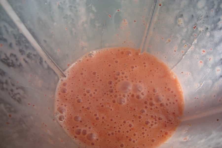 Transcurrido el tiempo de reposo, colocar todos los ingredientes en la juguera y procesar hasta se forme una crema homogénea y espumosa.