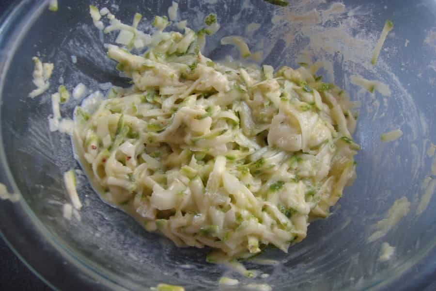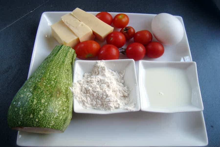 Lavar los zapallitos, cortarlos por la mitad y eliminar las semillas. En un recipiente rallar por la parte gruesa del rallador. Incorporar queso rallado, huevos, leche y harina, mezclar hasta integrar bien. Salpimentar a gusto y dejar reposar por 15 minutos.