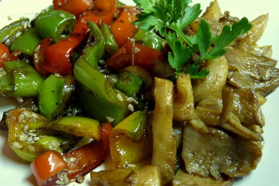 Los champiñones ostra son buenísimos para la salud, además de ser sabrosos. A continuación te presento una receta para prepararlos al ají amarillo y acompañados de unos suculentos pimentones con sésamo y aceto balsámico. Una deliciosa receta vegetariana.