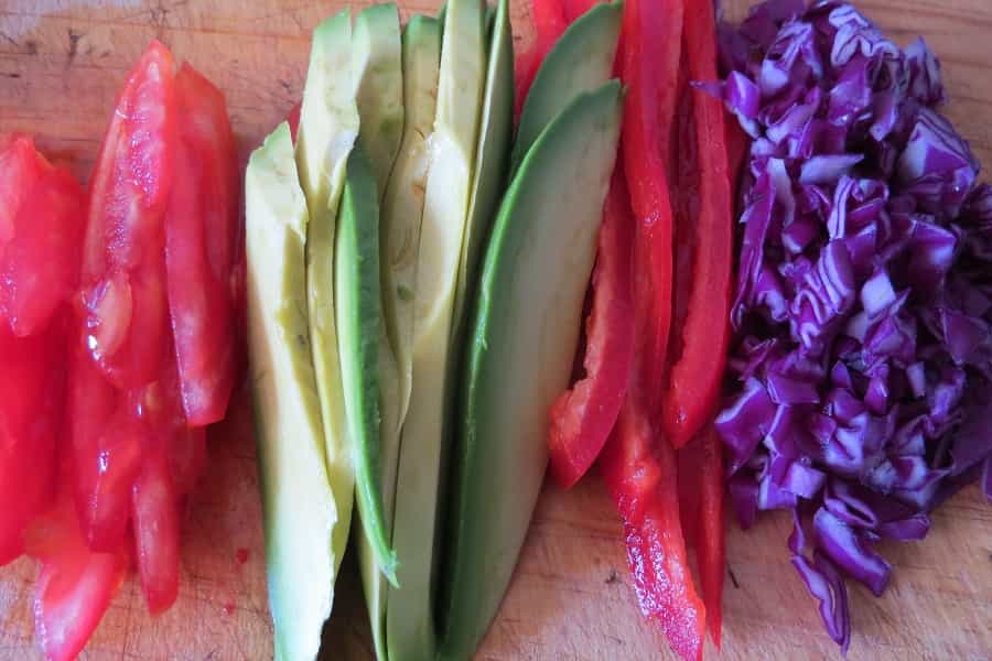 Cortar los vegetales en tiras (en el caso del repollo es mejor en cuadritos pequeños)