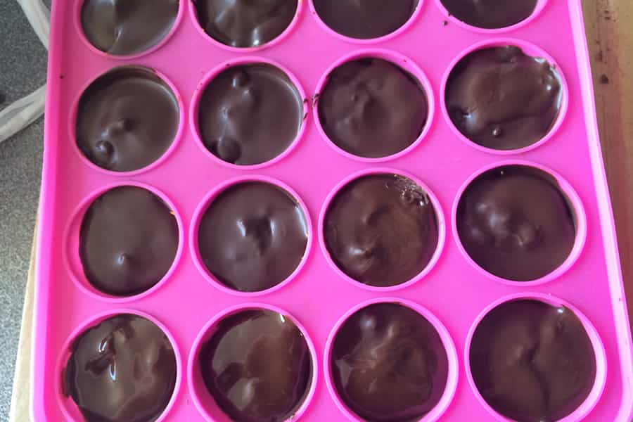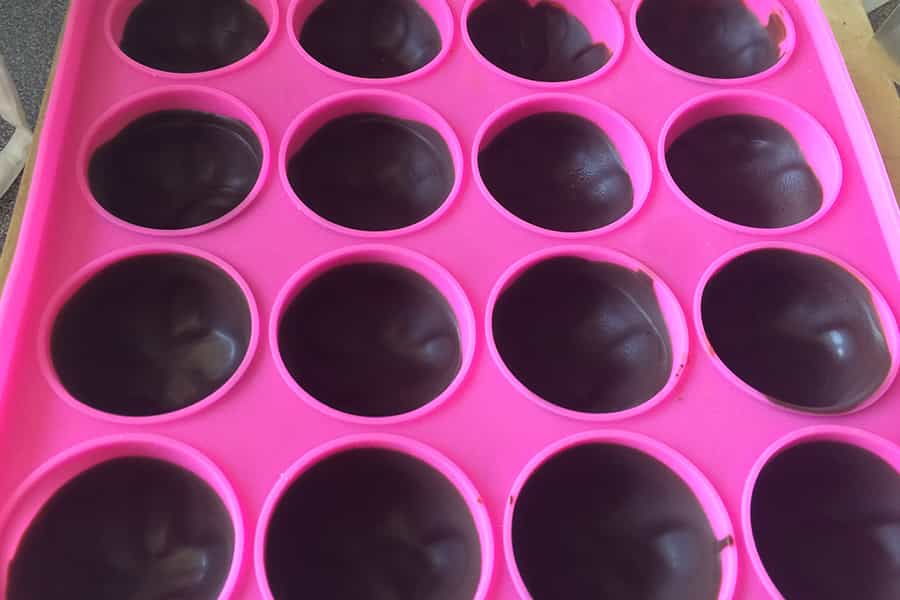 Una vez hayas llenado los espacios con el relleno, debes tomar nuevamente el chocolate y cerrar los bombones. Preocúpate de que no queden espacios vacíos por donde pueda salir el relleno.