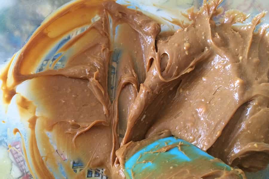 Esta etapa es cansadora, ya que trabajamos con ingredientes que son densos. Para ayudarte un poco, puedes usar manjar de repostería o calentar un rato el manjar común en el microondas para que se vuelva más blando. Es normal que queden algunos grumos por el queso, pero lo ideal es que mezcles todo hasta que no quede ninguno y la mezcla sea totalmente homogénea.