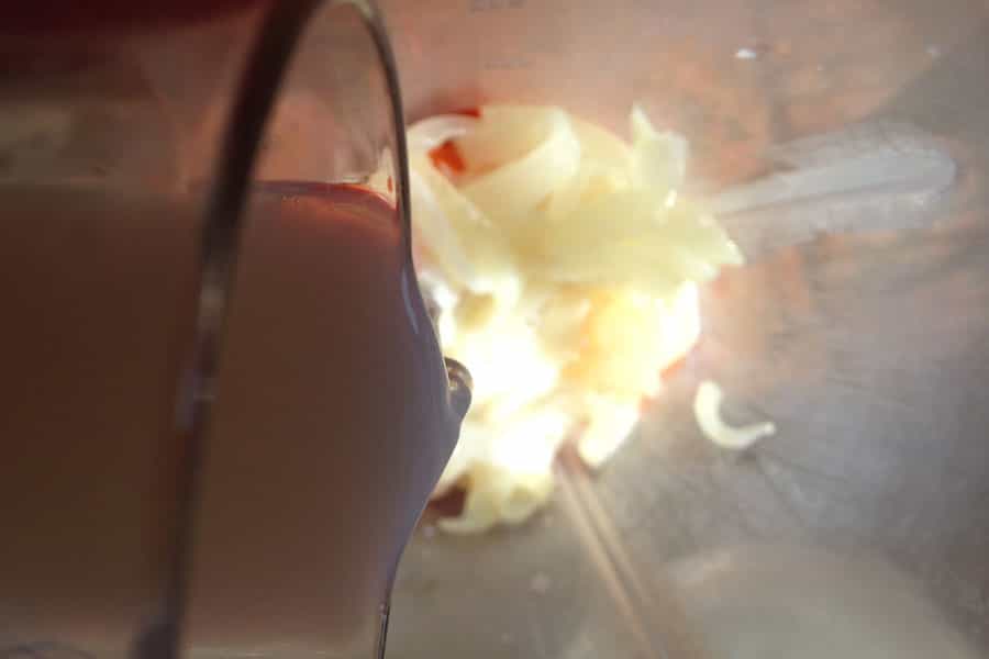 Después de terminado el tiempo, botarás el agua y pondrás las zanahorias y la cebolla en la juguera. Agregarás el vaso de leche, la sal y pimienta.