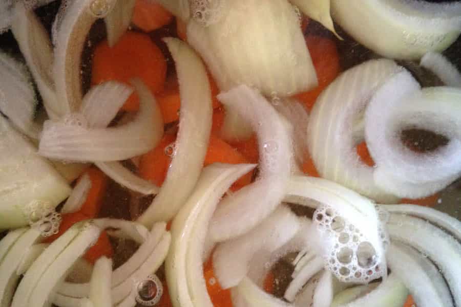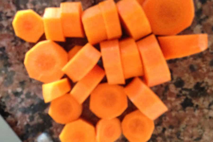 Luego añades ambos ingredientes a una olla con agua hervida, dejas ahí durante 15 a 20 minutos, hasta que las zanahorias estén blandas.